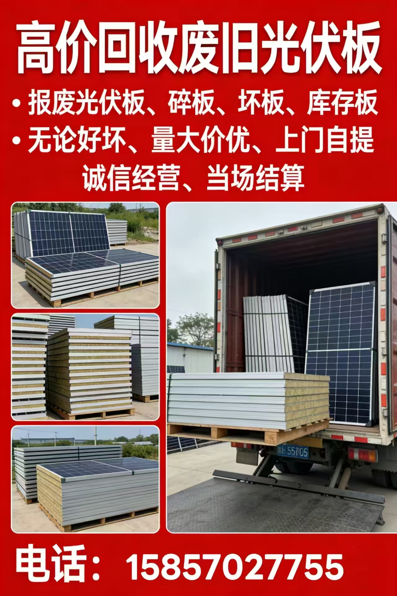 常山高价回收废旧光伏板 ,上门自提 、诚信经营,当场结算